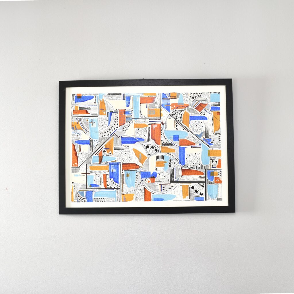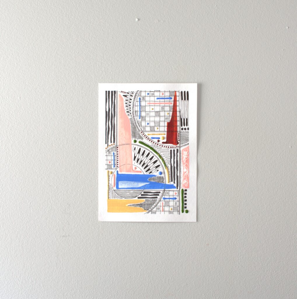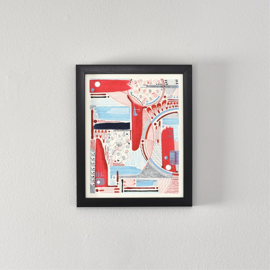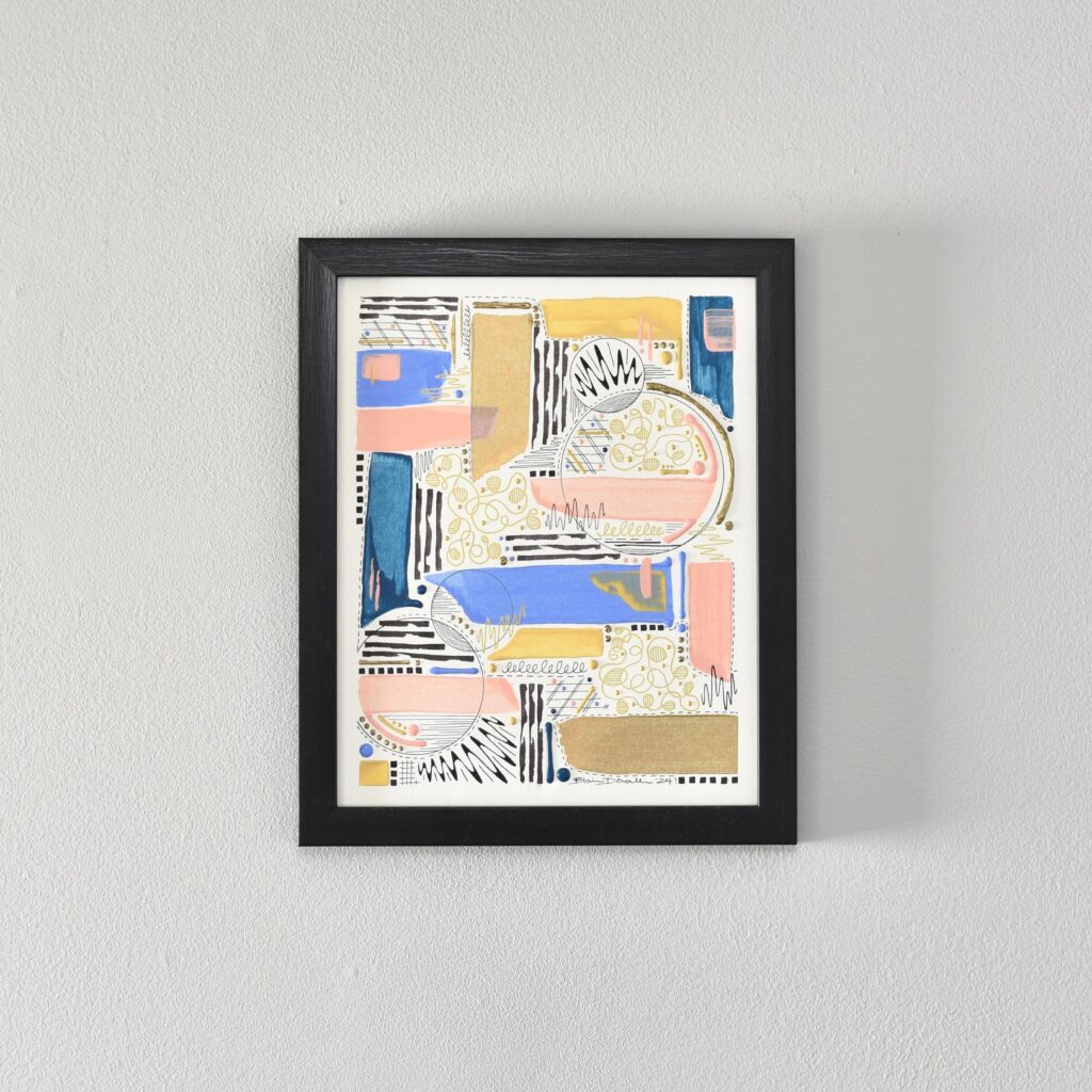 The “Think Series” is abstract art created in fluid acrylic and inks on paper. These mathematical and mesmerizing pieces are created by incorporating principles of geometry and balance.