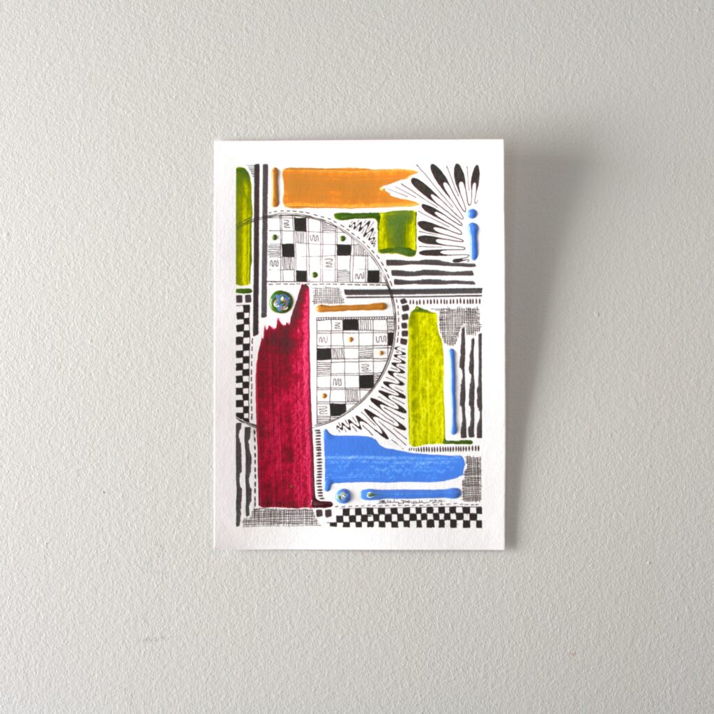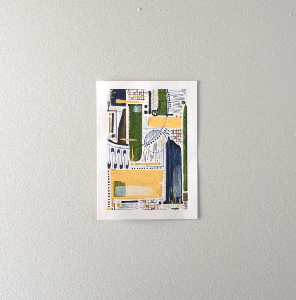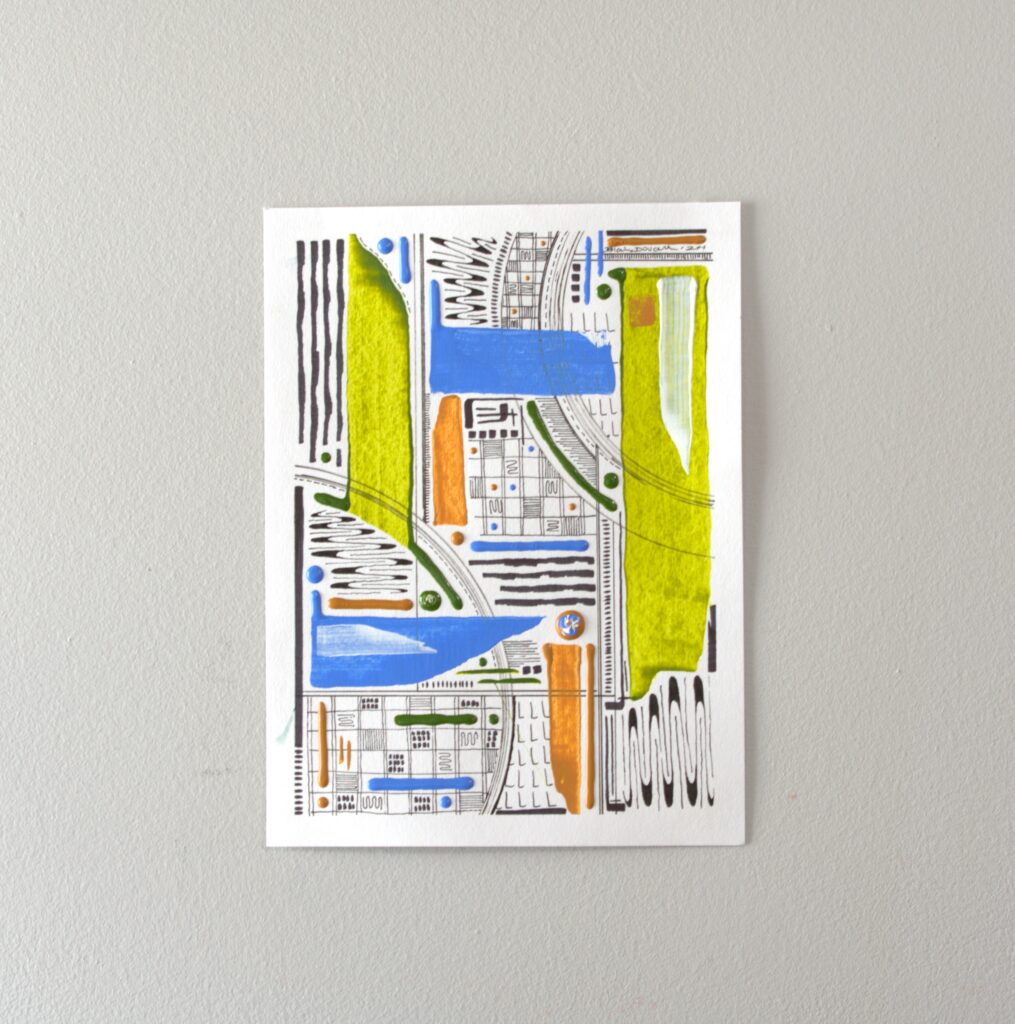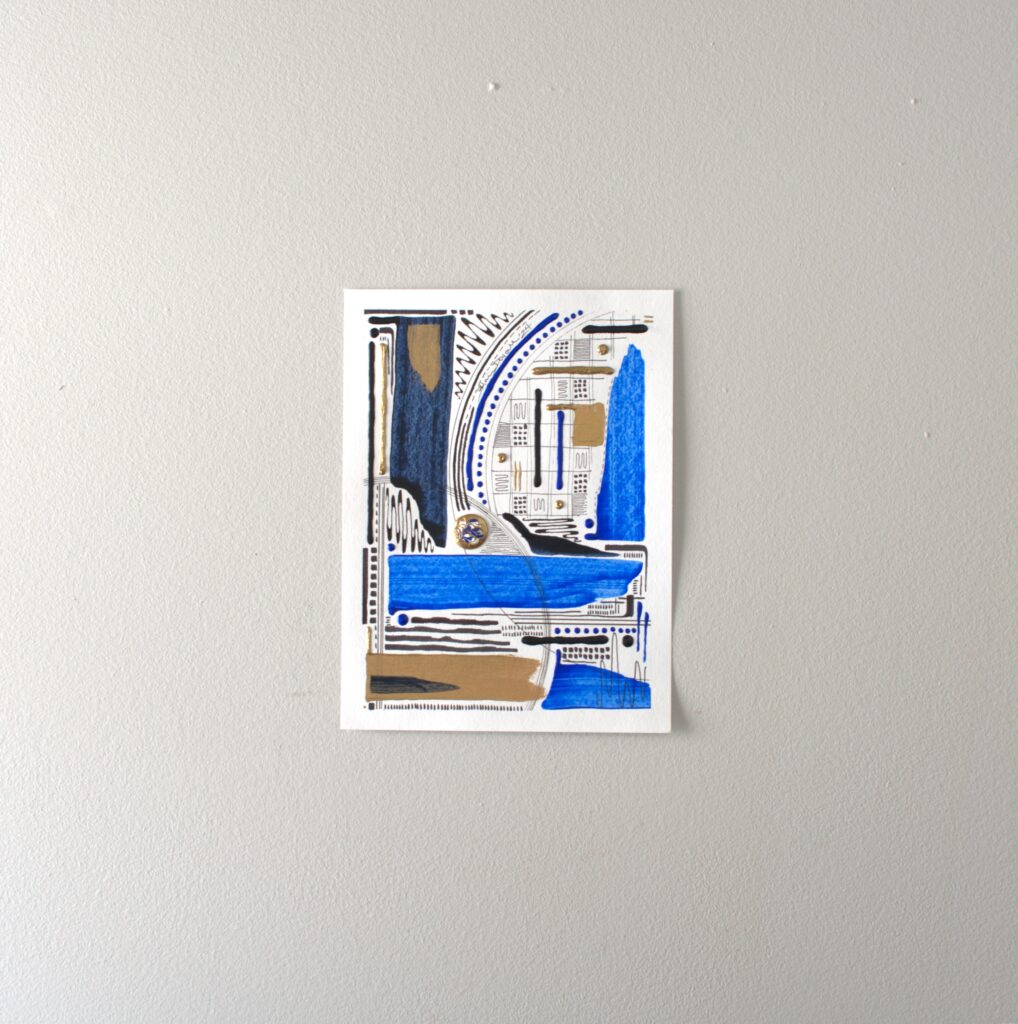 The “Think Series” is abstract art created in fluid acrylic and inks on paper. These mathematical and mesmerizing pieces are created by incorporating principles of geometry and balance.